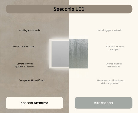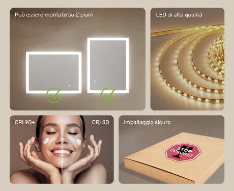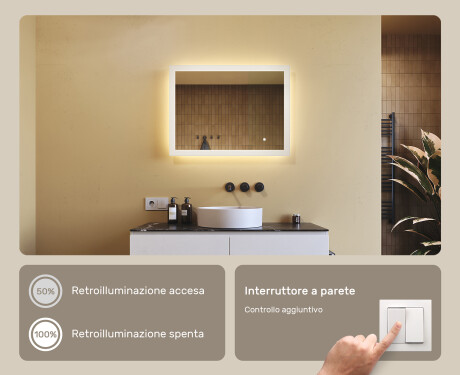Specchiera rettangolare da bagno con luce LED con Dual color, Interruttore tattile