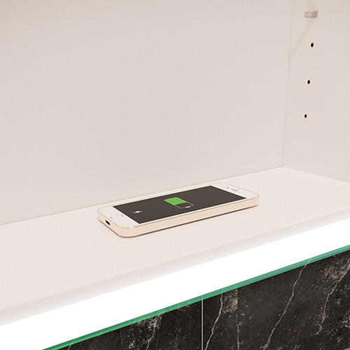Ricarica il telefono durante la toilette mattutina! Utilizzate il caricatore a induzione posto al centro del mobile per ricaricare sempre il vostro telefono. È sufficiente posizionare il telefono sul simbolo dell'induzione per avviare la ricarica.
