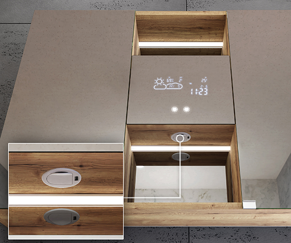 I nostri armadi non sono solo retroilluminati: scegliete tra i display informativi disponibili. Dal più semplice orologio alle stazioni per la previsione delle tendenze meteorologiche. Soluzioni ideali che semplificano praticamente la vostra routine quotidiana.
