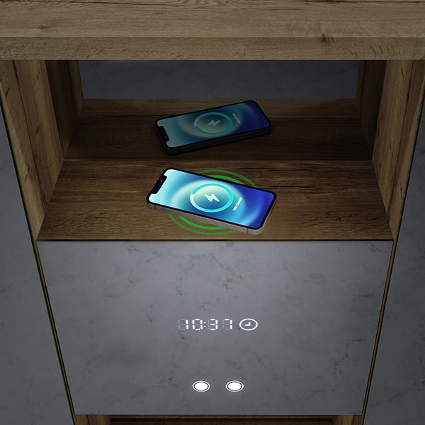 Scopri i servizi aggiuntivi: il caricabatterie a induzione caricherà in modo efficiente il tuo smartphone e la presa elettrica fornirà un posto comodo per collegare un asciugacapelli.