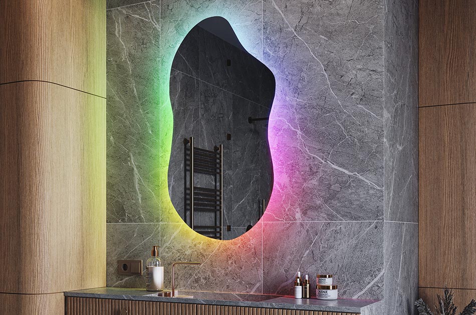 Enfatizza la tua bellezza con la luce migliore con il colore LED RGB! La nostra illuminazione a LED ti fornirà una varietà di colori ed effetti in modo da poter regolare l'illuminazione in base al tuo umore e alle tue esigenze. La nostra retroilluminazione a LED consente transizioni fluide tra i colori, creando un fantastico effetto cromatico nella tua stanza.