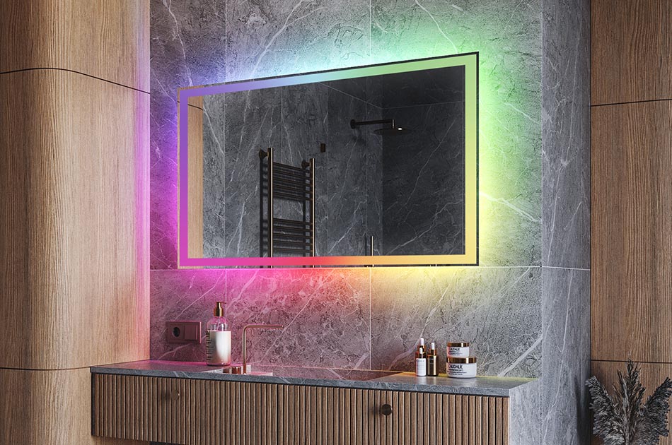 Enfatizza la tua bellezza con la luce migliore con il colore LED RGB! La nostra illuminazione a LED ti fornirà una varietà di colori ed effetti in modo da poter regolare l'illuminazione in base al tuo umore e alle tue esigenze. La nostra retroilluminazione a LED consente transizioni fluide tra i colori, creando un fantastico effetto cromatico nella tua stanza.